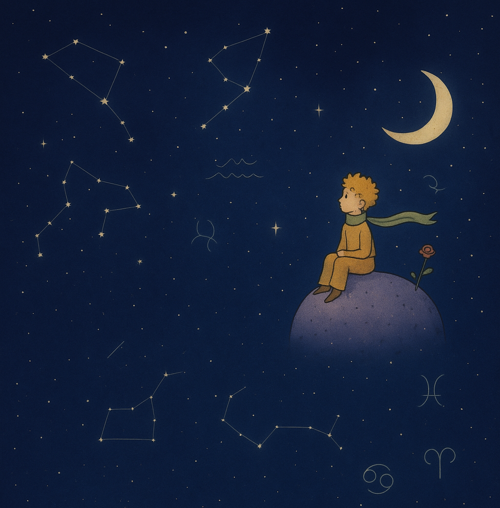 Welkom op de plek waar astrologie en verwondering samen komen. Geïnspireerd door de poëzie van De Kleine Prins, nemen wij je mee op een innerlijke reis langs planeten, tekens en kosmische inzichten.